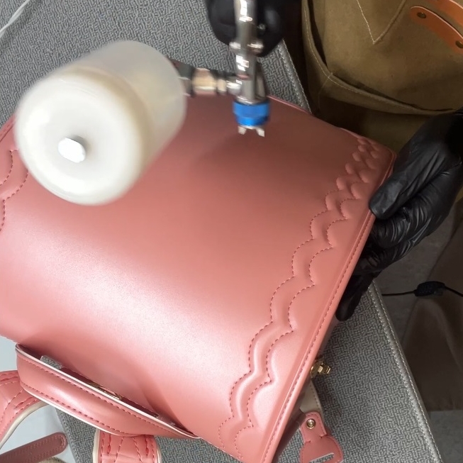 象徴的なリボンの装飾や、繊細なステッチの凹凸ひとつひとつを損なわないのは、分子レベルで結合するマジベルならでのコーティングです。