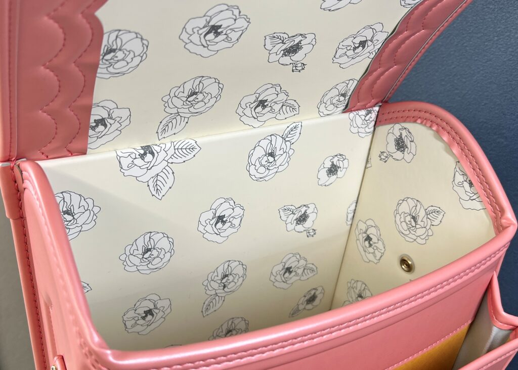 フリルのような繊細なステッチと、心ときめくピンクの色使い。これから始まる新しい毎日に、彩りと自信を添えてくれる特別なランドセルです。