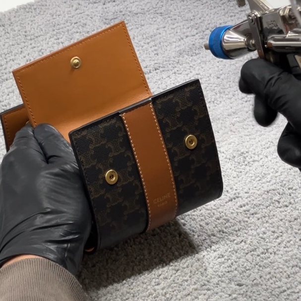 皆さん、こんにちは!今回はCELINE TRIOMPHE small TriFold walletマジベルコーティング施工いたします。