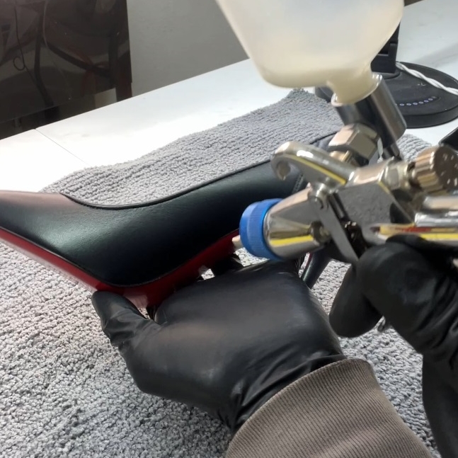 シボの中まで、レザーが浸透するように、薄くコーティングすることがポイントです。厚塗りをしてしますと、レザーにダメージを与え、ひび割れの原因にも繋がってしまいます。レザーのコーティングの次に、撥水効果のコーティングを施していきます。