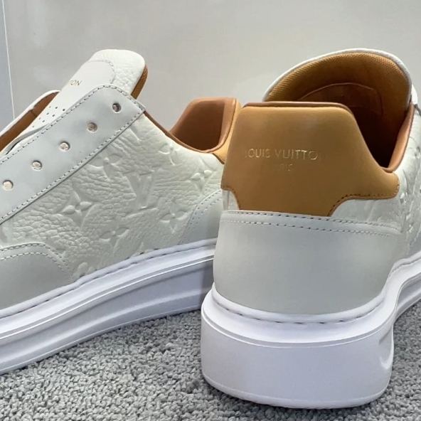 「BEVERLY HILLS」スニーカーは、ルイ・ヴィトンが展開するラグジュアリーで洗練されたカジュアルスニーカーラインの一つ。上質なレザーやカーフスキンを中心に使用し、柔らかく足に馴染むフィット感と軽量性が特徴。サイドやヒールに配されたモノグラム・パターンやLVロゴがブランドの存在感を上品に際立たせています。
