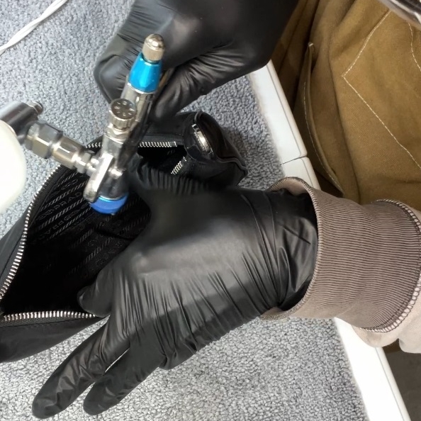 リナイロンといえば、耐久性や耐摩耗性、撥水性は備えているものの、防汚性は高くはなく、汚れた場合の対処が非常に難しい素材もあります。洗剤を使って強くこすると、毛羽立ち・白化の原因にもなってしまいます。だからと言って、むやみにコーティングをすればよいものではありません。膜厚のあるコーティングをしてしまうと、ナイロンの通気性低下を招き、白ムラの原因にもなってしまいます。お気に入りのバッグ。綺麗に長く大切に使いたい方!マジベルコーティングをご提案いたします。